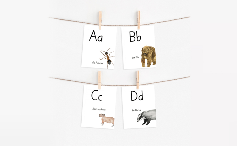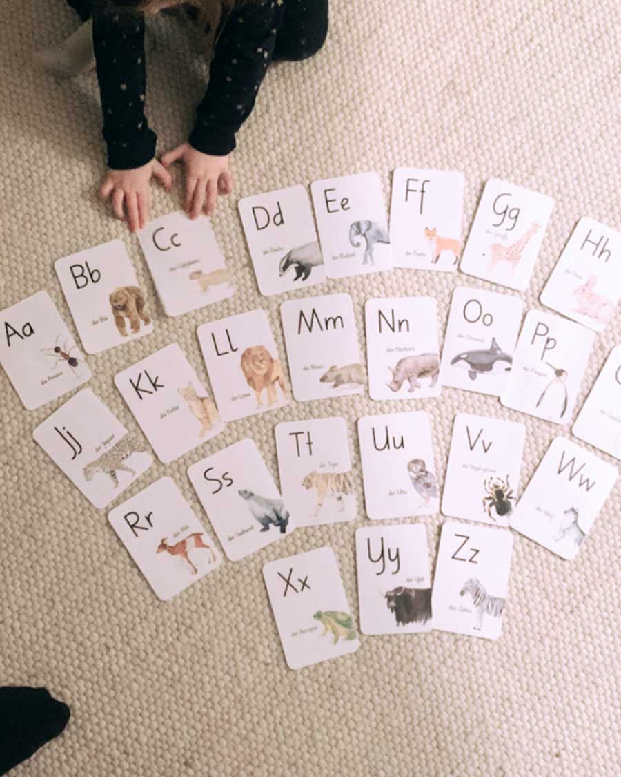 Dieser “M-I-L-C-H, Mama, da steht Milch!”-Moment ist ja sowas wie der neue “Oh Wahnsinn, sie macht ihren ersten Schritt!”-Moment. Die Neugier meiner Kinder auf die Sprache aber auch meine eigene Liebe zur Sprache, waren die Intentionen hinter diesen Druckvorlagen. Falls auch Deine Kinder sich für Buchstaben interessieren, kannst Du Dir unsere Karten gerne downloaden: